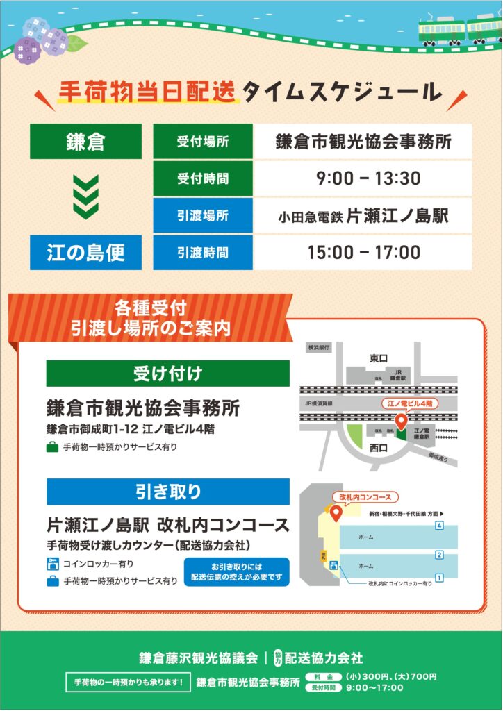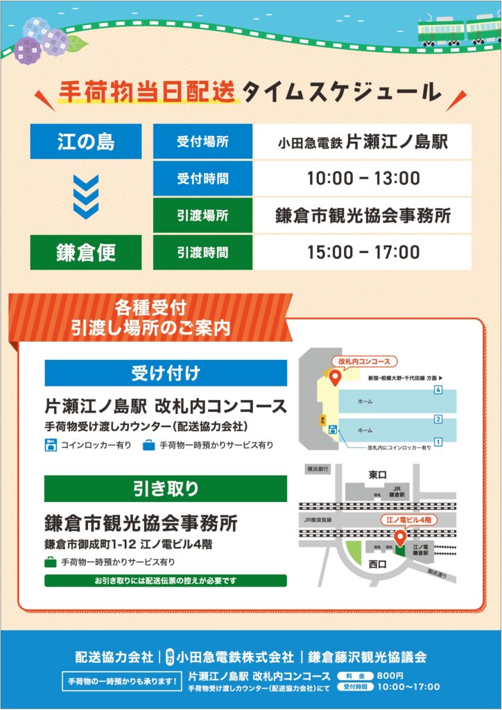 鎌倉から片瀬江ノ島駅へ、片瀬江ノ島駅から鎌倉へ、当日に荷物をお届けします。